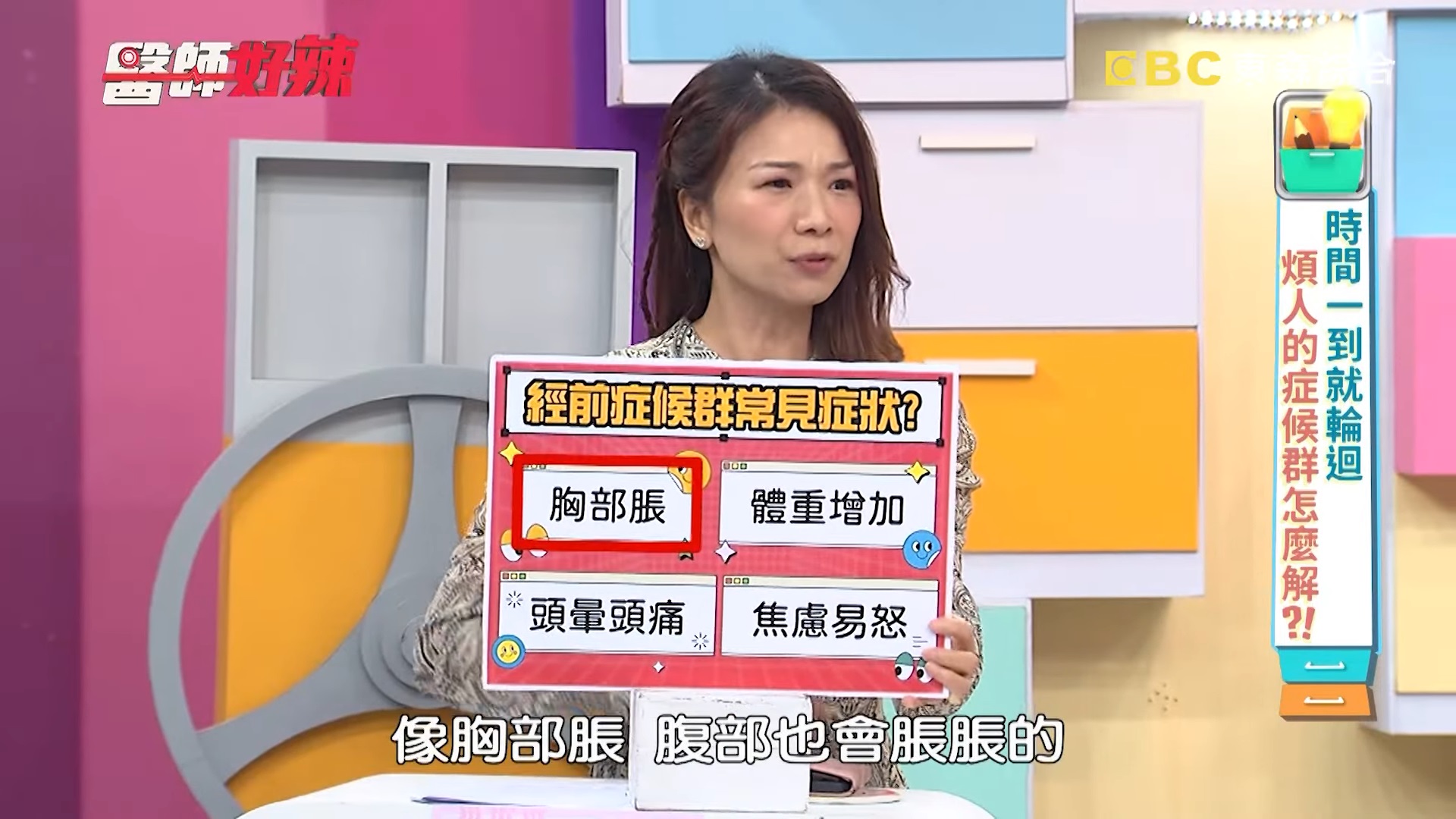 對此,婦產科醫師張宇琪表示,經前症候群常見的情況有「胸部脹」、「體重增加」、「頭暈頭痛」、「焦慮易怒」,大部分的女生都會有這樣的症狀,更嚴重的話還會有「經前不悅症」,甚至會萌生輕生的想法,相當危險!