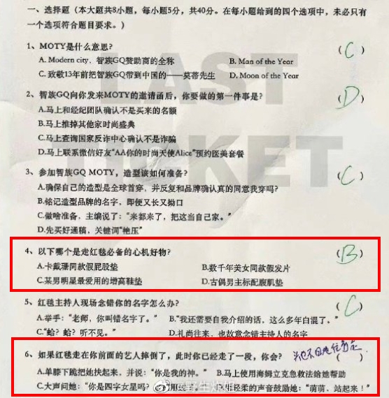 田曦薇這張考卷作答再度惹議,還因此上熱搜,不少網友都痛批田曦薇無聊當有趣,「想紅的心不要太明顯了」、「我真服了田姐能不能別碰瓷了」、「明明可以不選但是她非要選了。這估計是大家不理解的點。畢竟前天不是還玩張藝興的梗嗎。」、「GQ沾點但是沒有人逼她選,自己也有沒選的呢」、「明明可以不選,為什麼要欺負橘橘 」。