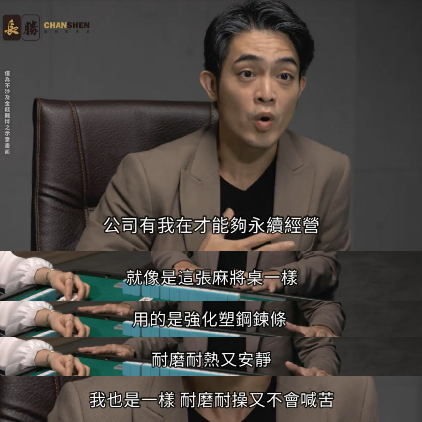 劇中更創意結合八點檔嗆聲風格,結合劇中的腳色人設,用台詞鬥爭、互嗆的方式,強調出長勝電動麻將桌-M5Ⅱ極薄過山車(折疊款)的特色、功能,「強化塑鋼鍊條,耐磨靜音」「桌款摺疊好收納」