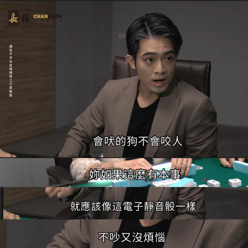 另外,其中的特色、功能「LED桌邊燈」、「電子靜音骰」也很有趣的安排在打麻將打到一半突然電燈短路,以及經典的嗆人台詞「會吠的狗不會咬人」置入劇情之中,讓人很難不注意到產品特色亮點,並忍不住會心一笑。