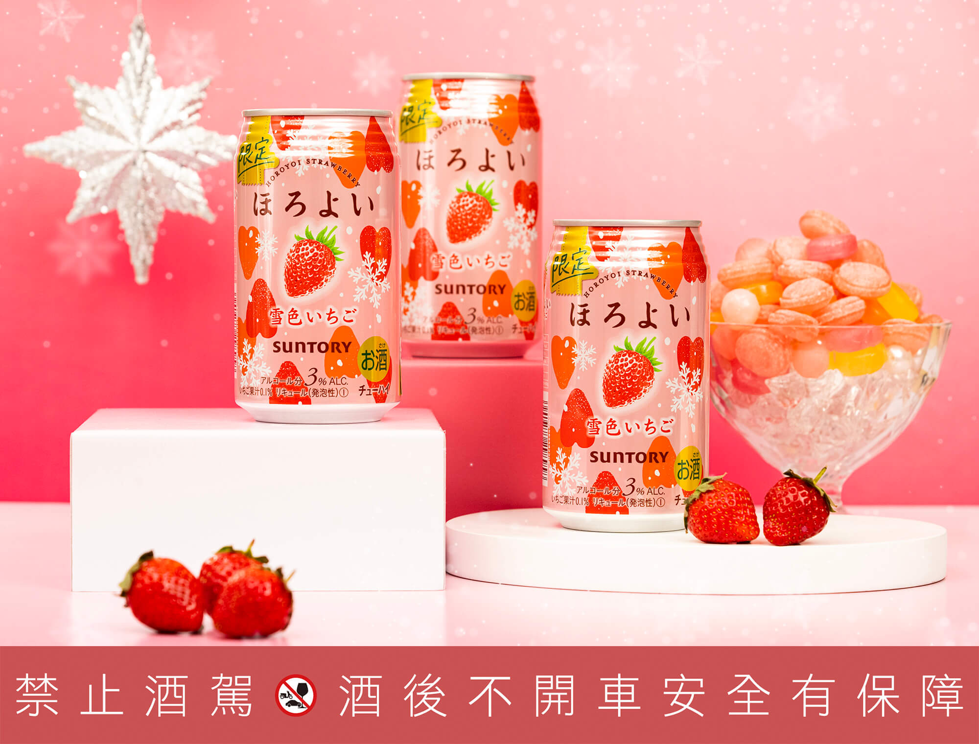 來自日本的低酒精飲料品牌「HOROYOI微醉(日文品牌名稱:ほろよい)」以口味多樣及繽紛可愛的瓶身擄獲台灣消費者喜愛,連續多年榮登台灣低酒精飲料的銷售冠軍。寒冬是草莓的夢幻季節,此次HOROYOI微醉推出全新限定口味「雪戀草莓」,由日本團隊研發,台灣限定上市,粉紅草莓與雪花紛飛交織而成的3%酒精,撲鼻而來的草莓香氣和入口後的酸甜氣泡,冬日戀愛浪漫滋味不言而喻!