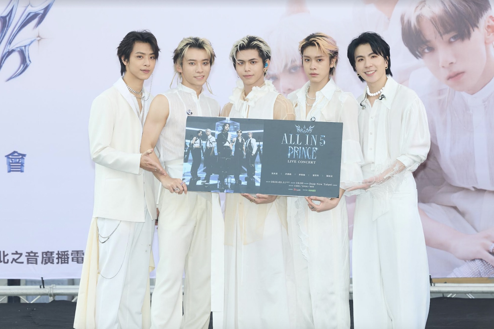 王子系男團ALL IN 5 今日(1/8)在台北舉辦《PRINCE》專輯簽唱會,現場氣氛熱烈,歡呼聲充滿西門町聯合醫院廣場;去年12/16推出《PRINCE》實體專輯的ALL IN 5 在這張專輯上下了十分的努力,不僅挑戰〈PRINCE〉超難戰舞,同時也以韋禮安打造的〈不愛了〉讓大家見證歌唱功力,〈PRINCE〉MV線上點閱己破百萬,〈不愛了〉也己破50萬,好成績讓男孩們十分開心:「覺得人生里程碑有一個解鎖了,接下來要朝向下一個一百萬。」ALL IN 5 專輯簽唱會從台中、高雄回到台北,ALL IN 5見到嘉賓吳映潔直喊:「店長!」去年在實境綜藝節目當實習生的ALL IN 5 在吳映潔眼中真的是「長大了。」