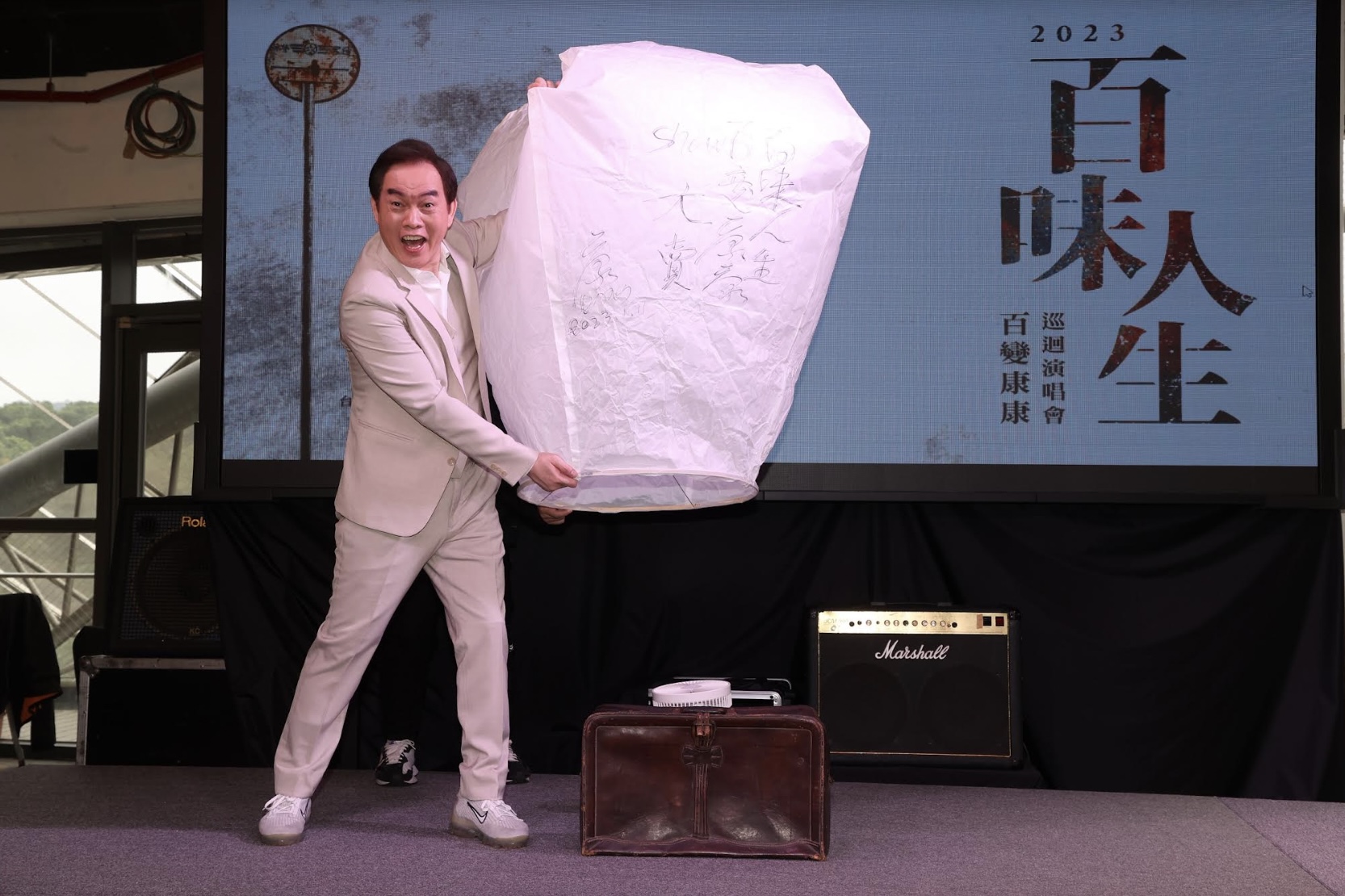 康康今(1/11) 舉辦)出道25週年「百味人生」百變康康巡迴演唱會售票記者會,演唱會門票將於1/13於UDN售票網獨賣,為符合演唱會主題「百味人生」主題,演唱會主視覺把電影「阿甘正傳」中所闡述的「人生就像一盒巧克力一樣」的概念做延伸,今天特別化身「阿甘」的康康現身的他拿著行李箱出場,深情演唱演唱會同名主打〈百味人生〉的他最近被媒體發現長相神似長榮航勤董事長,讓他開場就自稱「康董搬行李」,引起全場大笑;被問到自己對於長像像這位董事長有什麼感想?他笑說:「撞臉蠻好的啊!本來怕今天要邀請他來現場當嘉賓,但後來想想還是不要驚動到長官。」