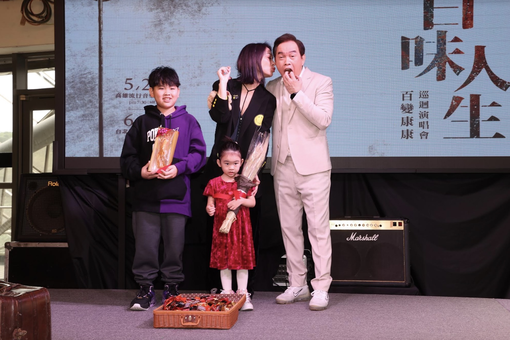 康康老婆、小孩驚喜現身記者會賀喜,康康「幸福100年」喜上加喜!趁著1/13售票前夕,主辦單位聯合數位文創特別選在『1月11日上午11點 11分』吉日吉時為「雙喜臨門」的康康舉辦演唱會售票記者會,甫於去年底發行全新專輯的他現場首唱新專輯兩首別具意義的主打歌〈百味人生〉、〈幸福100年〉為演唱會售票造勢外,更配合記者會『1111111』吉利數字舉辦「天燈祈福」的售票儀式預祝演唱會一飛衝天!此外,出道25年首攻南北「雙流」的他除了預告要以自己邁入12周年的幸福婚姻主軸送給歌迷驚喜,記者會當天自己的老婆、小孩也驚喜現身賀喜,由女兒送上「人蔘」、 兒子送「大麥」象徵預祝「百味人生大賣」,讓這場記者會添增滿滿的家庭幸福氛圍,可說別具意義!