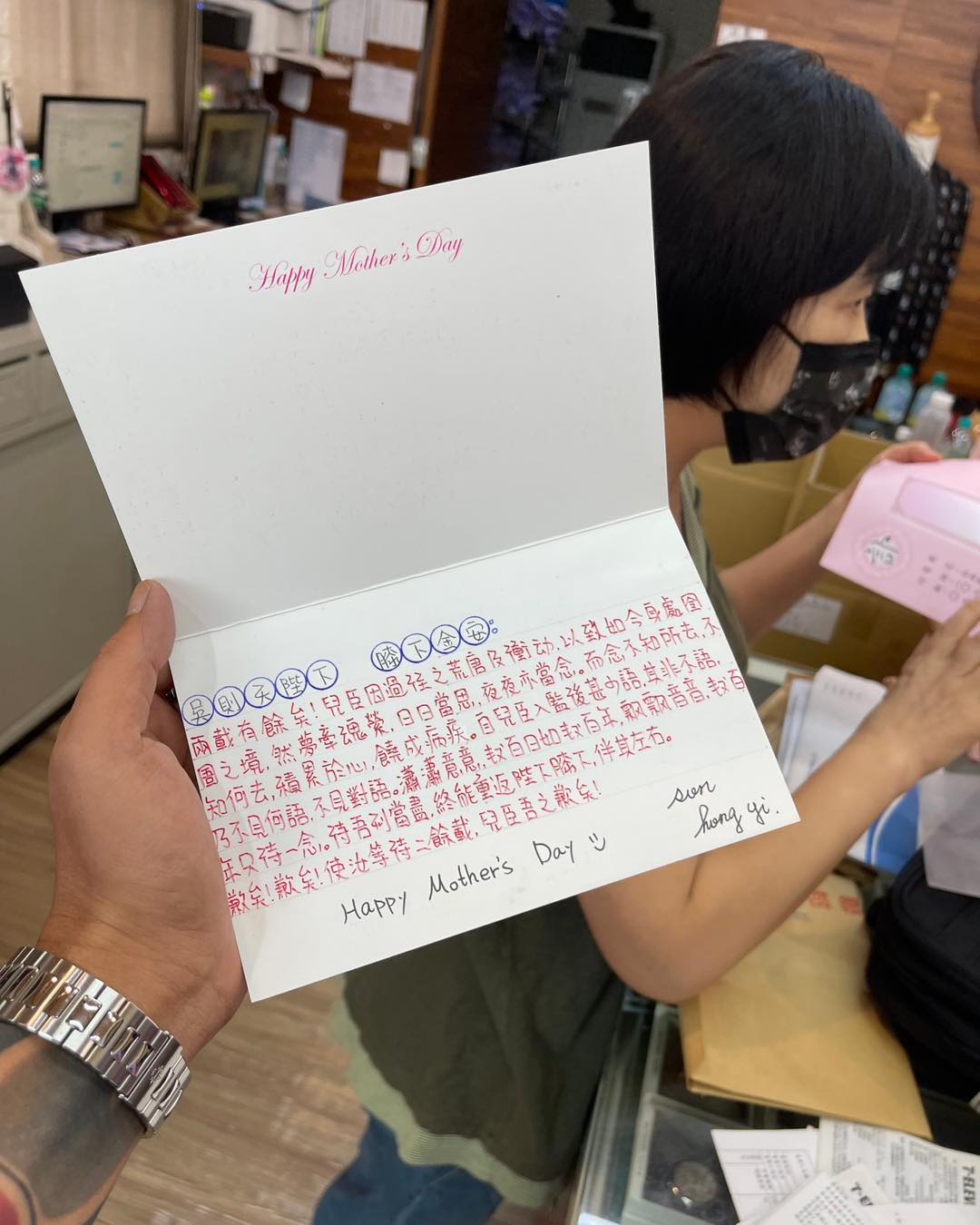 接著,鳳梨也在信中提到,待在獄中數百日對他來說就像是數百年一樣,並告知媽媽「等到我服刑完畢,就會再回到媽媽身邊陪伴左右了!」文末鳳梨也再度為自己讓媽媽等待與擔心獻上深深的歉意,「歉矣!歉矣!使汝等待二餘載,兒臣吾之歉矣!」相隔10年之久再次翻到這張卡片,也讓鳳梨感嘆的說,「我文筆真的挺好,如果沒走偏,應該是大學教授!」