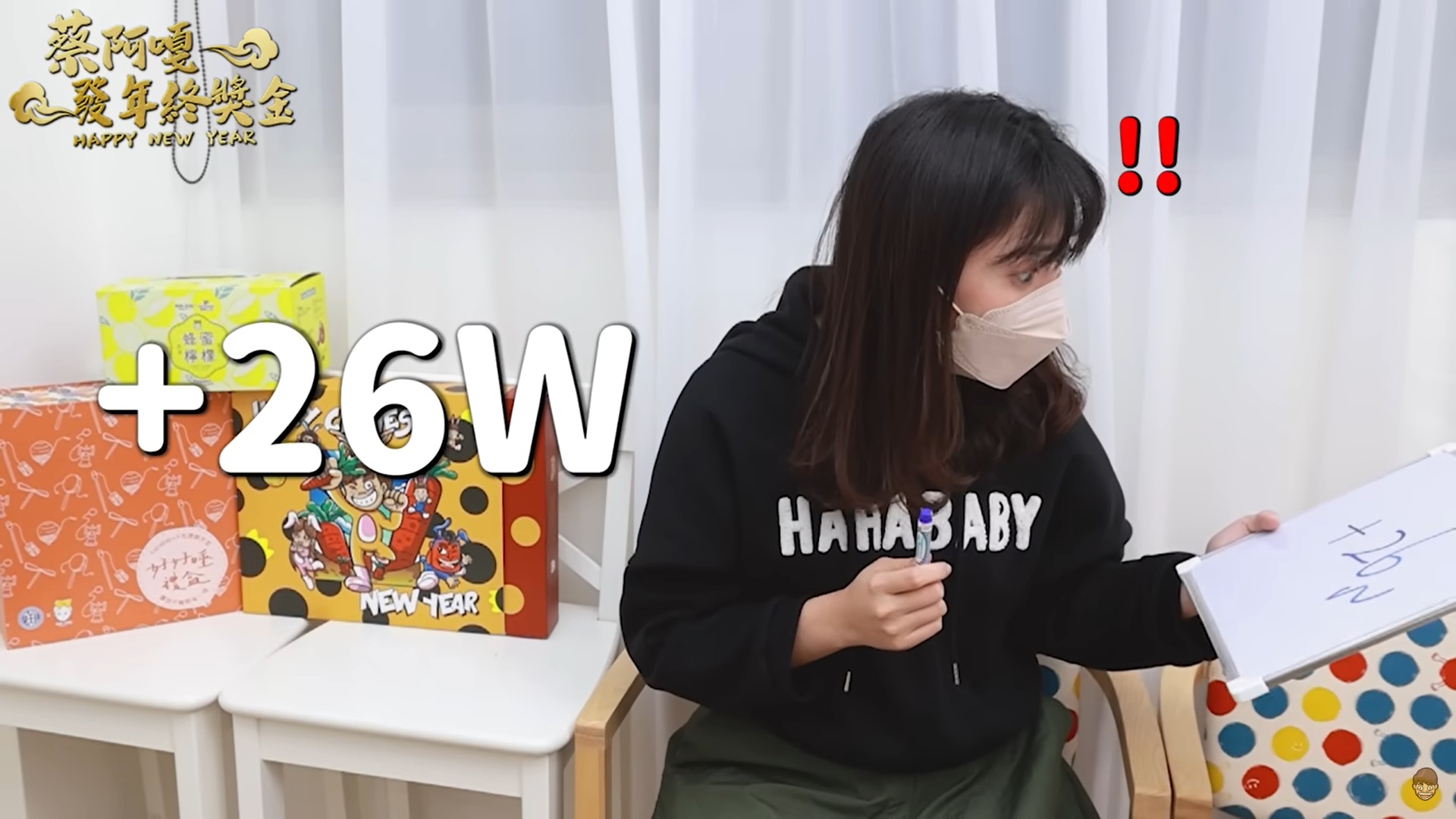 蔡阿嘎今年讓員工預測自己的年終獎金,再比對實際金額,如果比較低就會在白板寫上正確數字,只見有年資未滿一年的員工領了至少10萬以上,還有兩位員工實領的金額還要再「多加26萬」,就連攝影師蔡宗翰的老婆不是員工都有獎金!大手筆的舉動讓有些人嚇得驚慌失措,也有人感動落淚,現場氣氛既溫馨又搞笑。