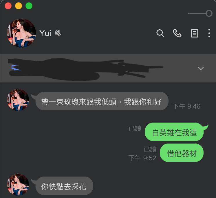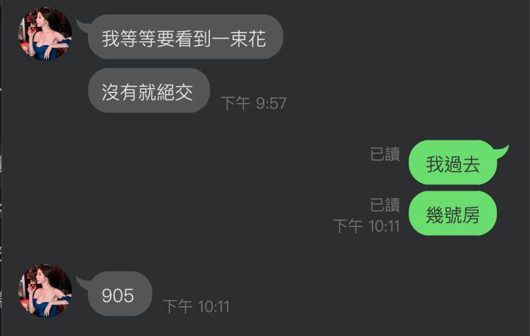 葉式特工在看到辛尤里的貼文之後,也在臉書發文公開兩人之間的對話紀錄,並且強調當天是辛尤里主動邀約他去飯店,「一下找藉口 要我幫你帶朋友過去,一下要我摘一朵花過去飯店找你,本來我是沒想去的,但你很想見我又情緒勒索,我才去」。從截圖畫面中也可以看到,辛尤里催促葉式特工趕快去摘花來見她,「帶一束玫瑰來跟我低頭,我跟你和好!」、「你快點去採花」,「我等等要看到一束花,沒有就絕交!」後來隔天兩人依然正常的對話。