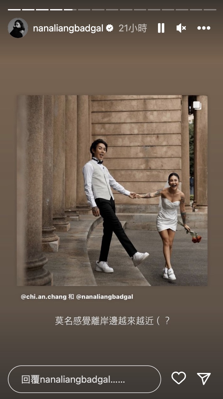 男友見狀趕緊出面解釋說兩人還沒訂下人生大事,只是拍攝業務上的合作而已!不過,也因此體會到拍婚紗是多麽辛苦的一件大工程,「結婚真是一件非常辛苦的事,我們還是先想辦法環完世界再說」。而梁云菲也在限時動態中發文寫道,「莫名感覺離岸邊越來越近」,感覺兩人之間應該離結婚這一步不遠了。