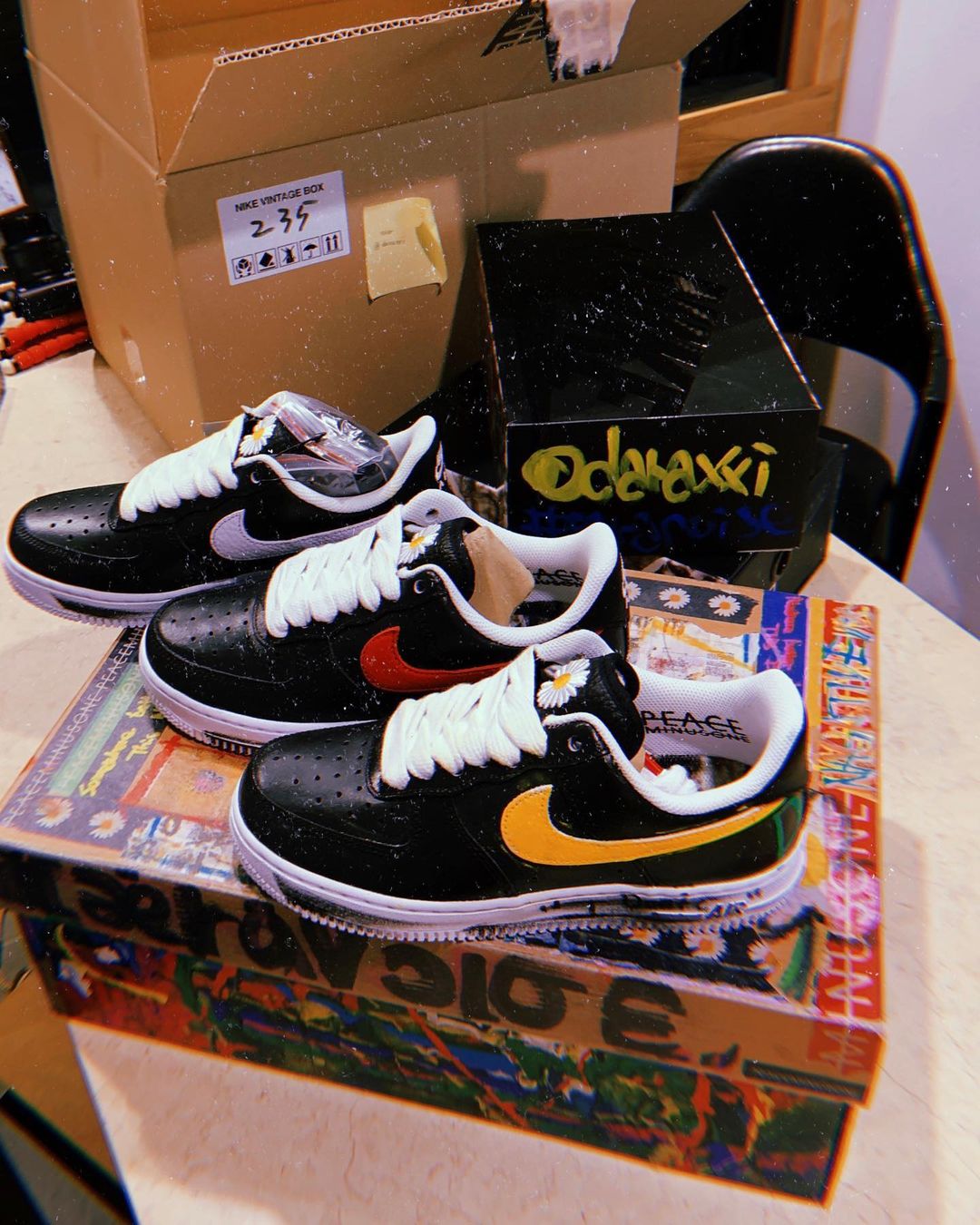 綜合韓國媒體報導,GD自創品牌PEACEMINUSONE與Nike聯名推出的「Air Force 1 Low Para-noise」由GD本人親自設計,這是雙方在2019年推出的鞋款,並且是首次合作。而這款球鞋當時其實推出了3個版本,除了常見一般白色的Nike經典「勾勾」外,還有韓國限量版「紅色勾勾」,以GD生日8月18日只販售818雙,稀有性也反映在球鞋市場上,據傳曾一度炒到400萬韓元(約新台幣10萬)以上!