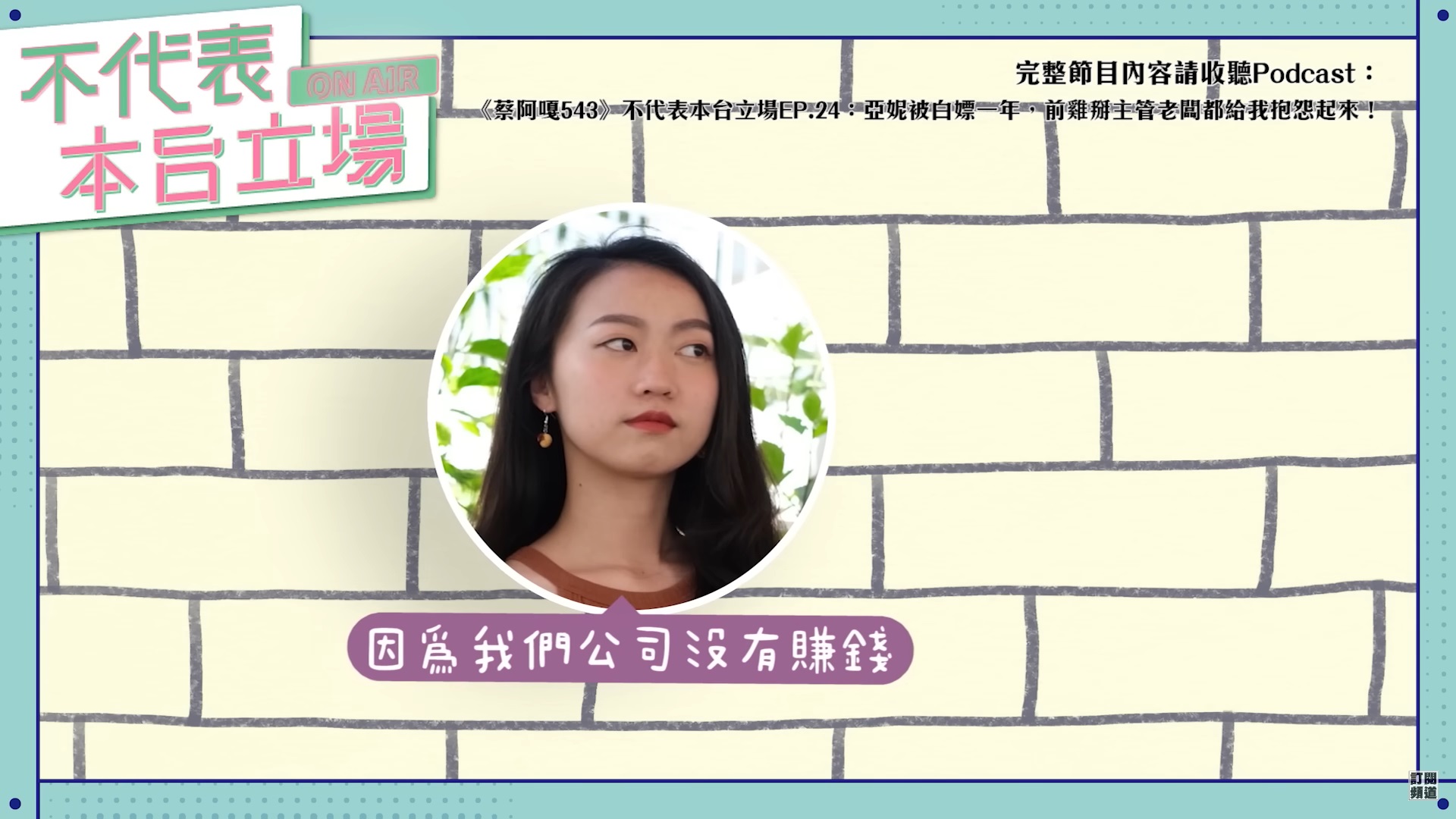 不僅如此,亞妮透露以前當不支薪的實習生時,一天上班8小時,而且還要加班!離職之後,前公司還以她當招牌,跟剩下的員工說:「亞妮說不定很快就會回來」,藉此留住員工,荒謬的行為讓大家聽了都噗哧大笑,大頭佛則直言:「怎麼會是用一個實習生來留住人?」被慘的遭遇就連黑工都不算,因為根本沒有拿到薪水,蔡阿嘎更笑說:「妳被白嫖一年!」