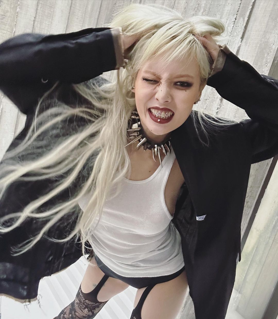 泫雅在9日於個人IG曬出一系列影片和照片,畫面中的她打扮風格和過往的病態頹廢妝容有所不同,換上前衛龐克造型,不但畫上煙燻妝加深眼影,還戴上牙環,其中一張照片更是還向鏡頭比出中指!雖然泫雅造型大轉變,不過這些影片和照片都沒有附加內文,尚未能得知是更換個人風格,或者是配合拍攝工作。