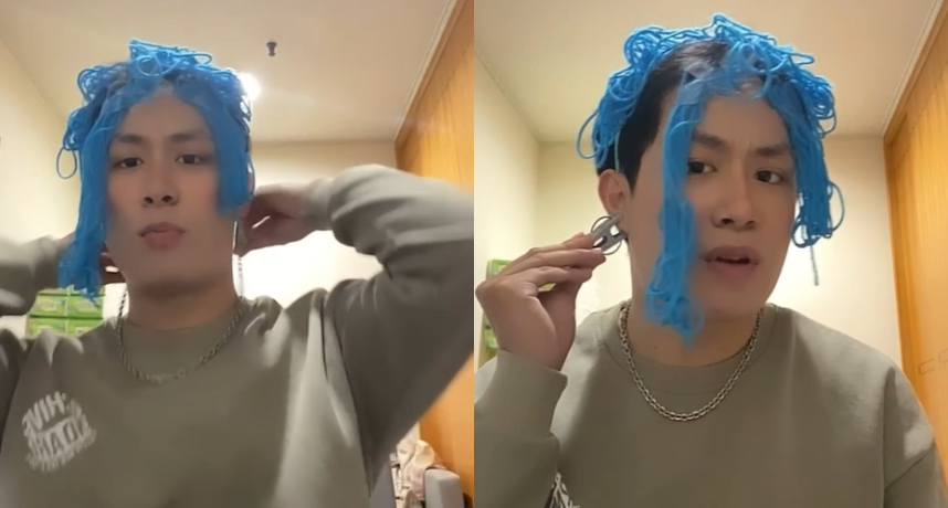 其中網友胡漢典更突發奇想,在影片中cosplay成「低配版婁峻碩」,只需要「Step1.藍色的毛線」、「Step2.隨手抓的銀項鍊、曬衣夾」,「Step 3. 剪出藍色圖形貼在胸前」、「Step 4. 學婁峻碩的手勢拿大麥克」,就能以超低成本創造十足效果!