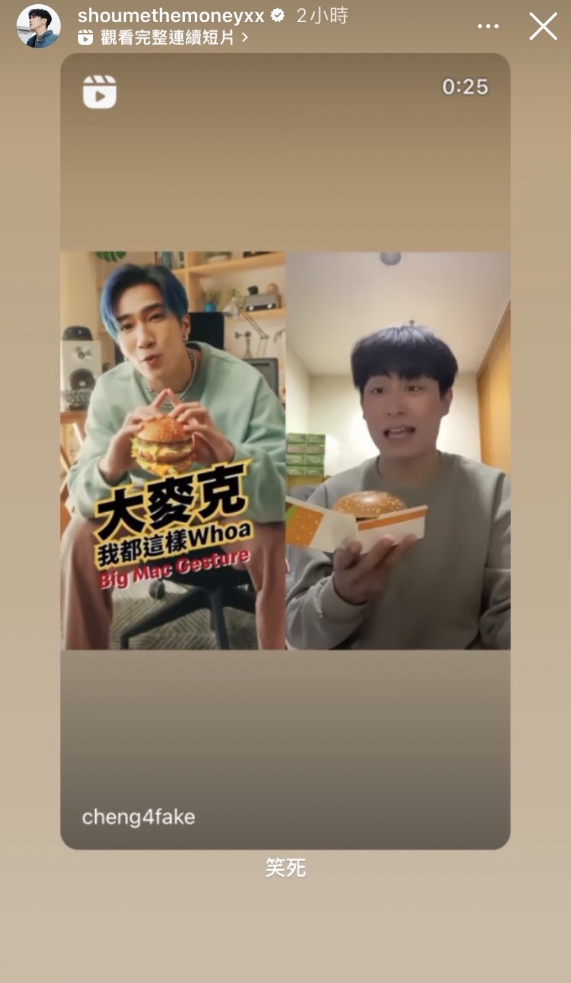 Instagram Reels是近年來在全球爆紅的短影片功能,而網路也掀起一些Reels的挑戰,像是與喜歡的藝人玩接唱互動、模仿迷因梗「立刻爆炸」等等。而近期麥當勞推出新活動,與婁峻碩合作新歌「大麥克我都這樣Whoa」,搭上意想不到的酷帥手勢,吸引網友與婁粉注意,小編也眼尖發現網友超爆笑挑戰影片!