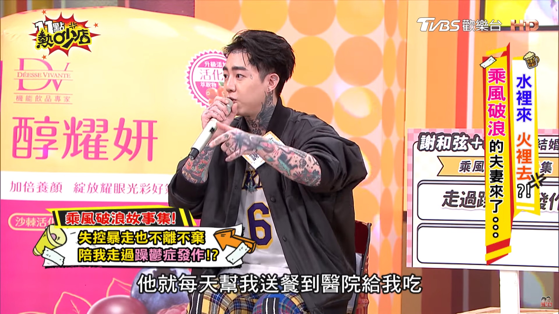 事實上,謝和弦剛跟緗妮認識3個月時,就發生這輩子最嚴重的躁鬱症病發,不只不知道自己做了什麼事,還會有幻聽,最後只好送去精神療養院治療。住院期間,緗妮不但沒有離開身邊,反而每天送餐到醫院,也會每天通電話,沈玉琳聽了都大讚:「好感人的真愛」!