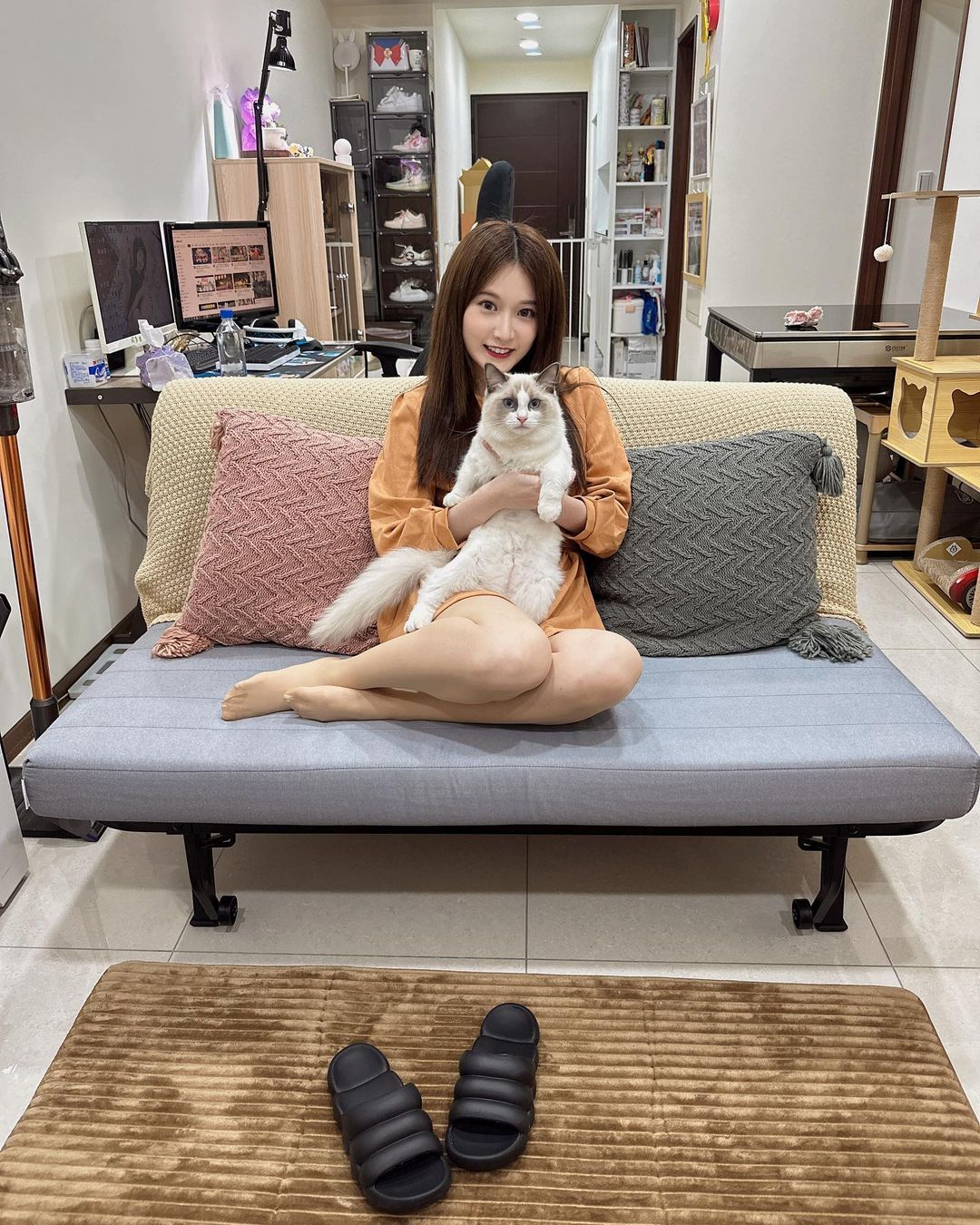 再往內走就會來到工作區域及客廳,由於就風水而言,門窗面對面會漏財,所以艾瑞絲特地在中間多放一個沙發,同時區隔電腦桌跟客廳,以軟裝劃分出空間。而客廳除了有許多貓咪的用品,還有不少收藏、遊戲機,以及腿部按摩機,艾瑞絲開心表示:「這是我家裡面最滿意的地方」!