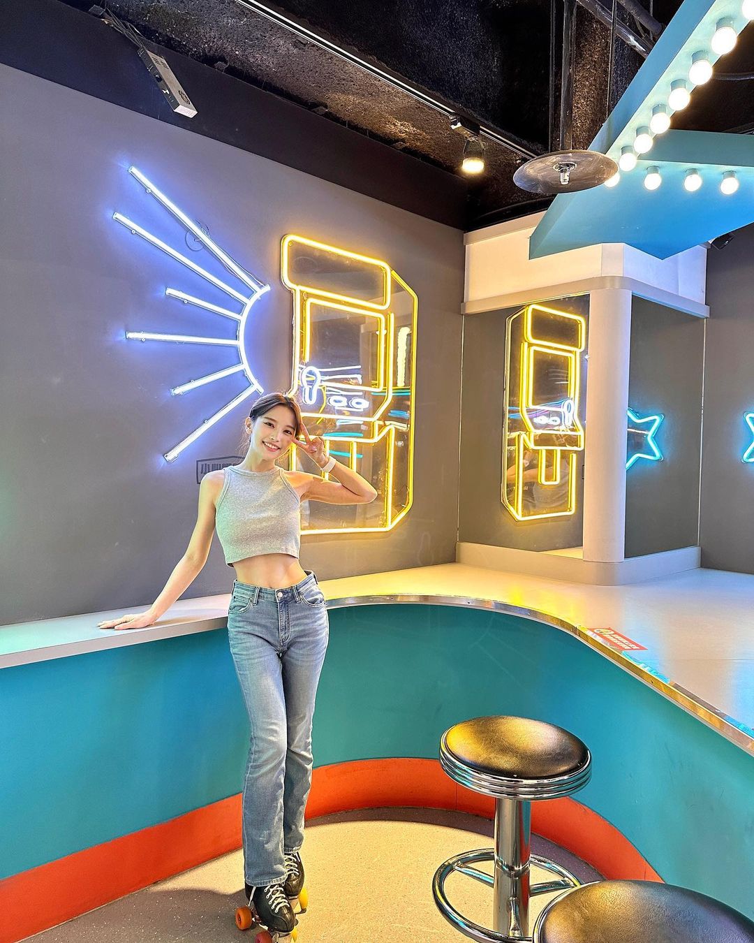 蔡瑞雪20日在社群上曬出自己初次溜四輪溜冰鞋的體驗照,從照片中可以看到,她身穿灰色露肚背心,下身搭配藍色牛仔褲,並透露自己第一次體驗溜四輪溜冰鞋,「第一次溜滑輪~還好沒跌倒!」而照片中也因為她肚子上的白皙肌膚上出現一個紅點,引起網友們討論,她也擔心被誤會跟大家解釋,「肚子上的紅點...是最後一張照片不小心刮到的」。