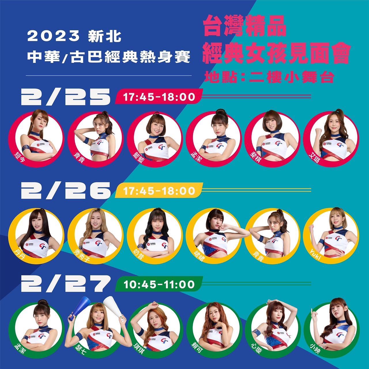 本屆主辦單位除了邀請中華啦啦隊「經典女孩」進場應援熱身賽之外,在2月25、26、27日更舉辦了「經典女孩」見面會,讓球迷、粉絲獲得更多與啦啦隊女神互動的機會。許多人氣啦啦隊成員峮峮、籃籃、短今都將出席本次見面會,消息一公布就湧入大量粉絲期待。