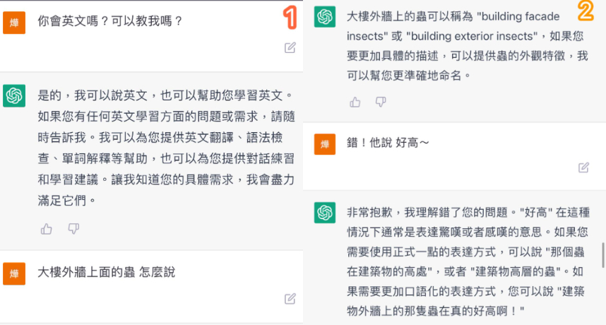 Kim 23日在臉書曬出與ChatGPT聊天的內容,並笑說:「今天收了一個新的徒弟,主要教他學會什麼是幽默~」只見Kim一開始要求機器人教英文,並詢問:「大樓外牆上面的蟲怎麼說?」機器人先是給了標準答案,但他表示:「錯!他說好高~」原來他是在說冷笑話。