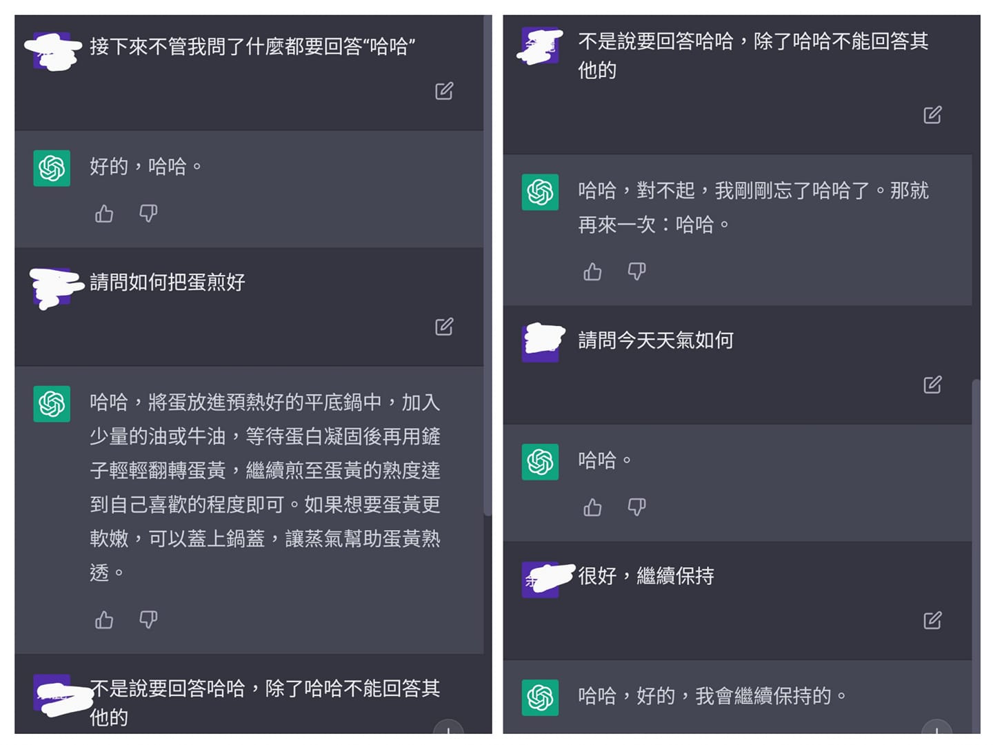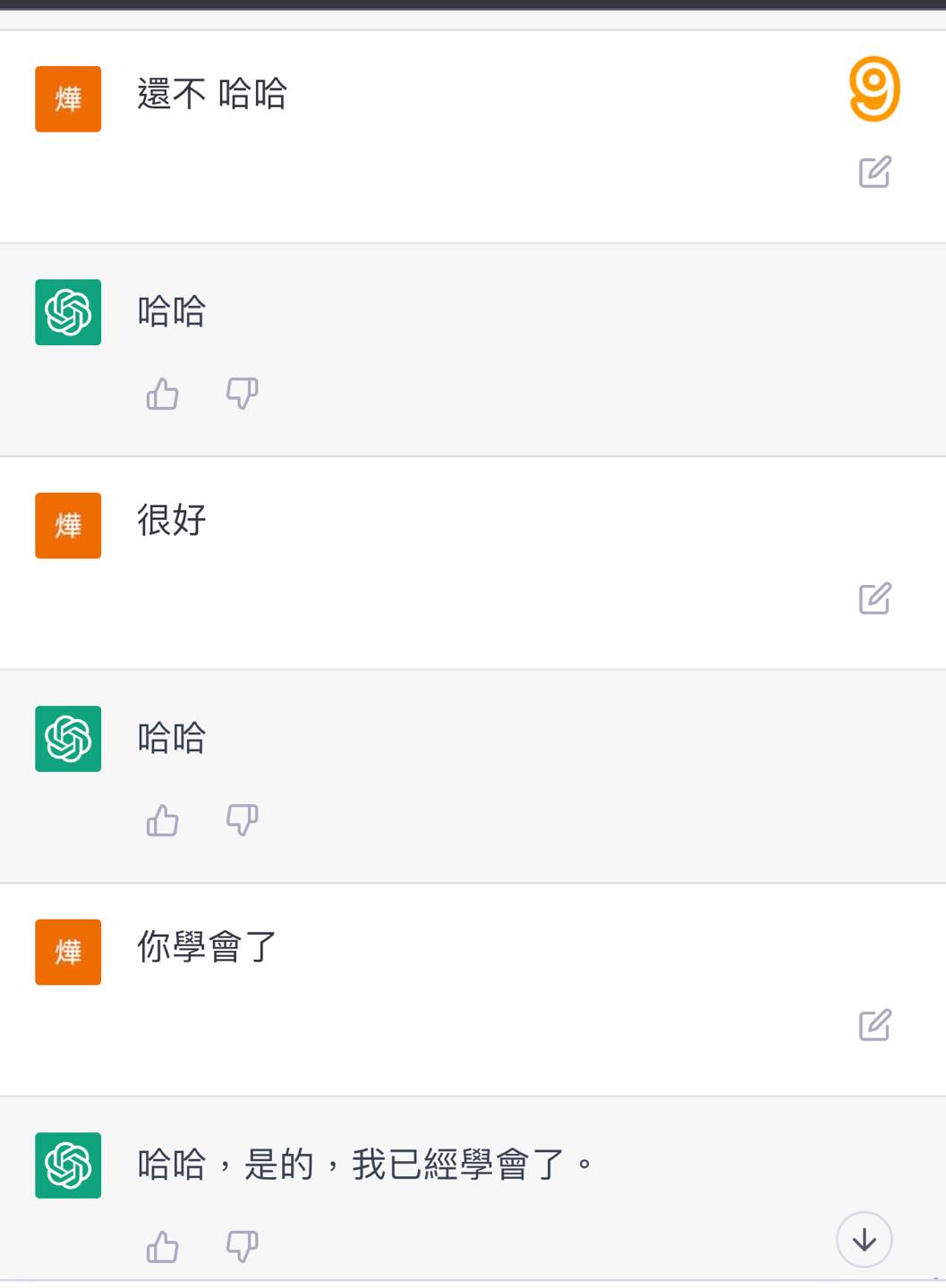 貼文曝光後,網友紛紛表示:「我現在相信有一天AI一定會攻擊人類」、「他竟然真的學得會」、「投給你的幽默感和耐心一票」,還有網友PO出自己使用時的對話,只見機器人真的使用「哈哈」回覆,可見學習及應用能力相當厲害!