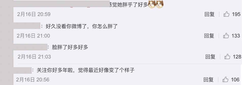 上個月時Fancy在微博上分享了二月最推薦的美妝用品,介紹的物品包羅萬象,包含:唇膏、氣墊粉餅、精華液,甚至連熱水機以及脫毛器都有,而Fancy也逐一詳細的介紹每一個品項,其中就有許多眼尖的網友發現Fancy的臉變胖了許多,留言說道:「感覺她胖乎了好多」、「好久沒看你微博了,你怎麼胖了」、「臉胖了好多好多」、「覺得最近好像變了個樣子」,看見網友們不斷吐槽她變胖,Fancy也回應:「我會努力減肥的」。